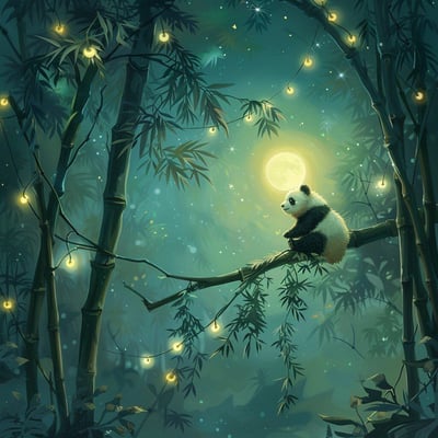 Beschrijving: Een dromerig gedicht over de avonturen van een panda.